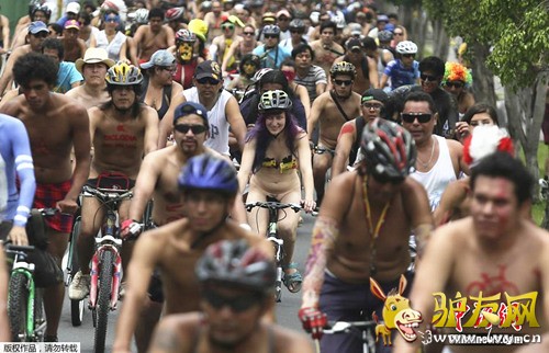 当地时间2014年3月8日,秘鲁利马,第九届裸骑活动在当地举行,民众赤裸身体骑自行车游行,捍卫城市内的骑行空间。![]() 世界裸体骑单车组织是2004年由英国人丹尼尔和康拉德创立的,目的是协调世界各地的"裸骑自行车"组织的统一行动。 其主张是"以裸体骑车的方式抗议当今社会过多使用汽车对环境造成污染","积极呼吁公众,更多地使用自行车代步,而不是开车出门"等。2004年6月12日在英国伦敦举行的"世界裸体骑自行车"游行和6月19日在西班牙马德里举行的"裸骑自行车展示",可以看作是该组织第一次"世界性活动"。 ![]() ![]() ![]() |