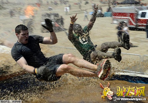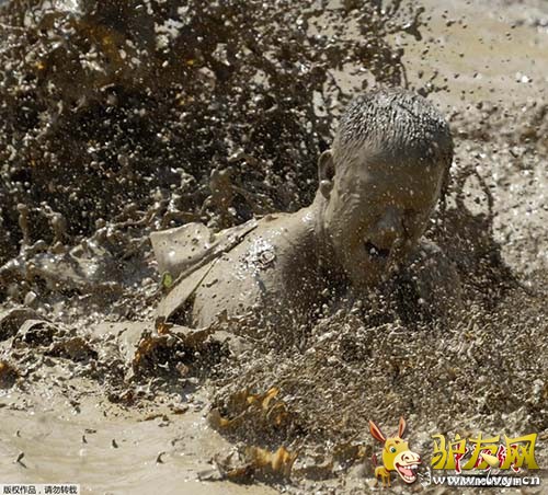 美国举行泥巴硬汉比赛 选手享受虐心穿越