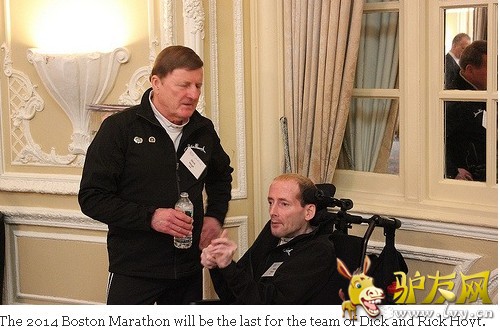 前几年,有一部名为《Team Hoyt》的视频感动了无数网友,讲述的是Dick和Rick父子的传奇经历,2014年波士顿马拉松,这对父子将迎来波马的谢幕演出。![]() Rick在出生时因脐带绕颈导致脑部缺氧受损,长大后只能通过加装一部能用头的侧面控制鼠标的计算机和外界沟通。1977年,Rick十五岁时,一位中学的同学因意外瘫痪,学校为其举行跑步筹款,Rick通过计算机打出∶“爸,我也想参加。”Dick推着Rick跑完了5mile,Rick对父亲说:“我今生第一次不觉得残障了!” 这句话深深地震撼了爸爸Dick,他决心要把那种感觉尽可能带给儿子,后来他们以“Team Hoyt”报名参加马拉松和三项铁人赛等比赛,跑步时Dick就推着Rick,游泳时Dick就拖着Rick躺着的橡皮艇游,骑自行车时Dick就骑着特制的自行车将Rick放在自行车前。 2013年,一尊他们的铜像在波士顿马拉松起点处落成。2014年,父亲已经73岁,儿子也已经51岁,目前为止,他们完成了1000多场比赛,包括247场铁人三项、70场马拉松等,马拉松最好成绩为2:40:47,跑过马拉松的人应该都知道这是一个多么了不起的成绩,而这还是在爸爸推着儿子的情况下跑出。 2014年的波士顿马拉松是这对父子的第32次也是最后一次参加。其实去年他们就想在完成波士顿马拉松的谢幕演出,但由于爆炸案的发生,他们决定2014年再跑一次。 |