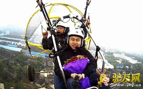 小康乘着动力滑翔伞,手捧玫瑰花向女朋友求婚 男子瞒着女友策划空中求婚,女友称“惊喜得说不出话来” 100米上空,3台动力滑翔伞飞了过来,两台动力滑翔伞上贴着“糖糖嫁给我吧”的求婚标语,27岁的小康乘着另外一台双人动力滑翔伞,手捧玫瑰花在他爱的人面前降落,给她一场毫无准备的求婚。最终,空中飞来的“王子”抱得美人归。
