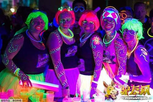 伦敦举行“荧光跑” 炫丽色彩点亮夜空