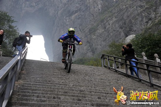 : 10月15日,来自台湾的极限车手江思翰在湖南张家界天门山挑战标志性景点—天门洞999级"天梯"。当天,江思翰骑着自行车,从999级天梯中段飞速而下,最终沿着台阶一直"飞"到起点平台。短短十余秒的速降骑行,让 ...