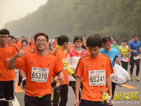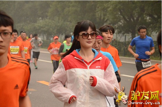 当天姚笛穿着一件红白相间的运动防晒衣,扎起马尾,整个人显得清新柔美,落落大方。虽然素颜的她戴着黑超,但在大雾霾天里依然放弃了口罩傍身,可见以真面目示人的决心十分坚定。来去匆匆的跑友们没有注意到这位“头条女王”,她昂首阔步的慢跑在北马赛场。