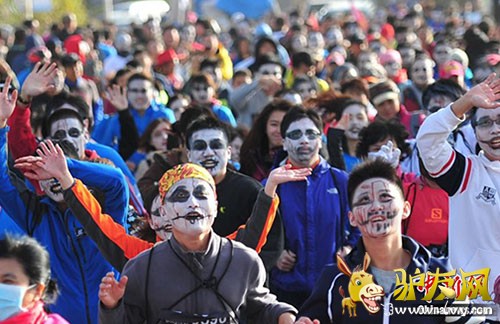 千余“僵尸”现身沈阳街头僵尸跑 吓哭过路小孩