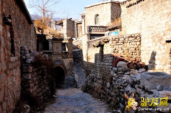 村庄依山坡而建,所以街道高低错落,纵横交织。