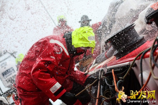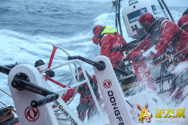 自10月11日,七支船队从西班牙阿利坎特出发后,船员们已经在海上生活了整整23天。此次事故发生在北京时间11月3日凌晨2点,东风号与右舷横风帆控帆缭绳滑轮相连接的不锈钢环被狂风连根拔起,导致东风号右舷后侧甲板严重受损、三根安全护栏断裂,安全钢丝断裂,船尾护栏断裂,舵轮断裂。索性并没有船员在此次意外中受伤,东风队在发生器材故障后的半个小时里船速迅速从平均22节下降到12节,和第一名阿布扎比之间的差距逐渐扩大,损失近5海里。但船员们速度重新控制住船帆,检查受损害的部分,到船再次起速,在天气潮湿寒冷的黑夜中,整夜全速追赶,到北京时间下午2点时一直保持第二名的位置。 ![]()