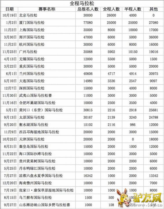 笔者跑马拉松8年,经历了比赛名额没人要、赞助商赠送礼物求报名到如今抢春运火车票般激烈的报名过程,也算是见证了中国马拉松长跑的逐步普及与火热。 笔者近年也多次参加国外的马拉松比赛,对于国内外对马拉松、对跑步文化的理解差异感同身受。在国外,马拉松是一种生活方式,是一条完整而绵长的产业链,是一份蕴含金矿的成熟产业。在国内,马拉松的蓬勃是在最近两年兴起的,马拉松扮演的角色是宣传城市的工具、传播健康文化的载体。这是马拉松发展的必经之路。只有让政府、产业链、普通大众都从马拉松赛事中尝到甜头,才会让这项运动从蓬勃走向繁荣,从无序走向壮大。 ![]() 笔者关心的一个问题是:国内到底有多少人能在6小时左右跑完马拉松? 这个数据带有风向标的意味,能在规定时间内完成全程马拉松的人数的稳定增加才能表明马拉松赛事的发展方向是正确的。随着近年国内马拉松赛事的井喷,完赛人数应该水涨船高,如果两者没有正相关,表明赛事的组织脱节于跑者规模的增长。 但是这个数据目前尚无官方权威数据,笔者遂以2014年田协发布的马拉松计划为依据,整理了各赛事官网、赛后新闻通稿、主流媒体新闻等信源,汇总了一下今年参加马拉松比赛人数、完赛人数等情况。 ![]() ![]()