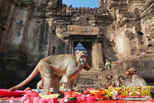 泰国庆祝猴子自助餐节 2吨美食犒赏馋嘴猴