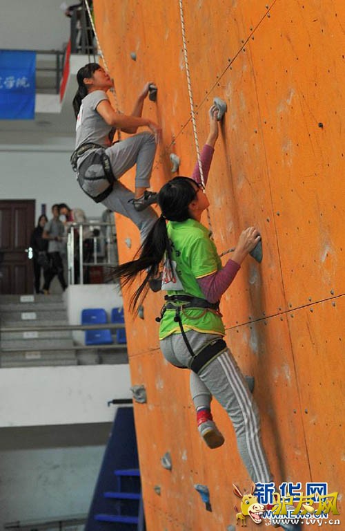29日,2014全国大学生攀岩北区赛在长春举行,本次赛事吸引了来自全国17所高校的19支代表队、183名选手参赛,共同享受“挑战自我 勇攀高峰”的攀岩精神。 ![]() 本次赛事共设快速攀岩和难度攀岩两个项目,男子、女子分组进行比赛。29日进行了预赛。据了解,快速攀岩采用计时方式,到达终点用时最少的选手胜出。而难度攀岩则比拼攀爬者路线选取、攀爬技巧及体力分配的综合利用,最终攀爬高度最高者胜出。 “攀岩运动非常适合年轻人,是一项比较时尚的运动。目前,中国大学生攀岩协会共有88所会员单位,每年都会组织一次全国大学生攀岩锦标赛,长期进行训练的学生有近500名。”中国大学生体育协会攀岩分会副秘书长朱江华说。 据朱江华介绍,攀岩运动十分适合在校园内开展,可拓宽高校体育的内容和空间。目前,攀岩项目已被正式列为世界大学生单项体育赛事,2016年将在上海举行首届世界大学生攀岩锦标赛。 “攀岩运动的好处在于可以让参与者在娱乐放松中锻炼上肢力量和身体协调性,同时增进学生们的身心健康,”他说。 朱江华认为,攀岩最重要的锻炼价值在于挑战自我,与对抗性项目不同,攀岩是以自己为对手,不断克服心中的恐惧,向着顶峰勇敢攀登,这与青少年在成长过程所需要培养的意志十分契合。 ![]() |