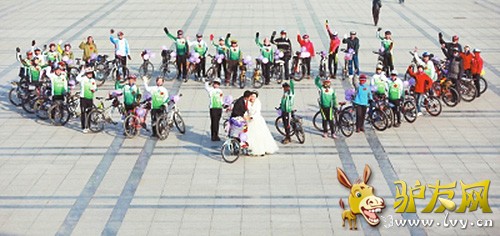 昨日,27岁小伙儿郝幸福结婚了。他的迎亲队伍很特别,是56名驴友骑着单车组成的。婚车是一辆被气球和鲜花装点的双人自行车,身穿西服的新郎载着漂亮的新娘,在绵延百余米的单车车队护卫下,形成了一道独特而温馨的风景,如此低碳环保又特别的迎亲方式引来众多市民围观。![]() 绵延百余米的单车迎亲队骑行在王城大桥上,好一道独特亮丽的风景! ![]() 骑友们围成一个“心”形,郝幸福在心尖上深情地亲吻着新娘。 【现场】 56辆单车迎亲,赚足眼球收获满满的祝福 昨日早上7时30分,王城大道纱厂西路口,56名骑友身穿骑行服、头戴骑行帽聚集在此,忙着为爱车“梳妆打扮”,此时他们的身份不是驴友,是伴郎伴娘。8时许,单车队停在纱厂西路一小区,婚车是一辆被气球和鲜花装点的双人自行车,新郎郝幸福骑上车子,带着浩浩荡荡的队伍去接新娘。 郝幸福是名骑行爱好者,一个月前,他想办一场独特婚礼—“骑单车接新娘”,遂找到洛阳拓乐4+2骑行俱乐部。“短短4天,50多名骑行爱好者报名参加,义务帮忙,很多人都不认识新郎新娘。”俱乐部负责人说,有骑友一大早骑行10余公里来为新郎捧场。 如此壮观的迎亲队伍,赚足了眼球。沿途不少行人纷纷驻足,沿街商户也特意跑到门口,瞅着自行车队伍一路骑过,好几辆轿车甚至靠边停下,拍上几张照片,并送上祝福。 20分钟后,迎亲队伍到达新娘所在宾馆。新郎抱起新娘骑着双人自行车出发。途中偶遇一支迎亲的豪华车队,两对新人相互挥手致意。 【甜蜜】爱情不一定非要香车豪宅,骑单车结婚独特而温馨 27岁的新郎郝幸福,是许昌禹州市人。2005年来洛上学,毕业后留洛工作,现在经营一家网店。26岁的新娘刘婷,是四川广元市人,原本在成都市一家省直机关幼儿园上班。两年前,经同学介绍,与郝幸福相识并相恋。 经历1年多异地恋后,去年夏天,刘婷毅然辞去成都的工作,来到洛阳陪伴郝幸福。两人都想让婚礼变得更加特别一点,遂萌生骑单车结婚的想法。“起初,媳妇儿心里没底,因为她没接触过骑行。”郝幸福说,经过详细的计划,媳妇儿同意了骑单车结婚的意见,双方家人也都非常赞成。 “爱情不一定需要香车豪宅,骑单车结婚,低碳环保,不铺张浪费,独特而温馨。路人也都纷纷向我们送上祝福,此刻和心爱的人骑自行车一起上路,就是最大的幸福。”新娘刘婷说。 婚礼现场,新郎郝幸福说,他真的是好幸福!“感谢捧场的驴友们,尽管天气很冷,但大家的热情不减。希望这场单车婚礼,能够让媳妇感受到不一样的幸福。” “对年轻人来说,最希望自己的婚礼能跟别人不一样。自行车接亲不仅有文艺范儿,还不会千篇一律。”市民刘春雷说,他也在考虑用骑自行车的方式迎接他未来的新娘。 |