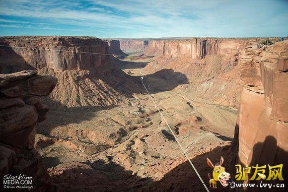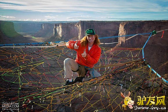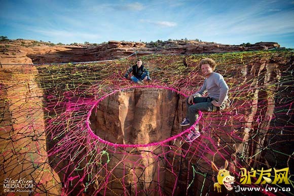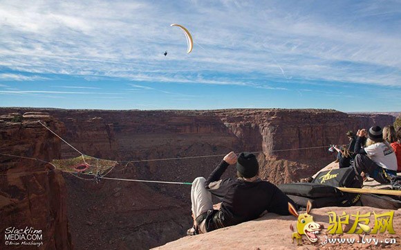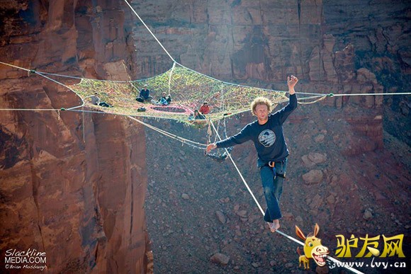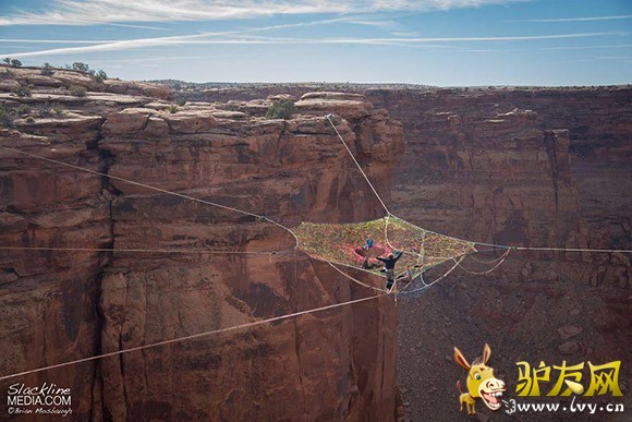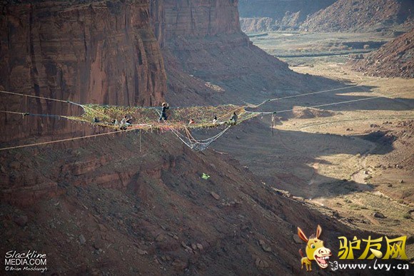 : 据外媒报道,一群美国极限运动爱好者在犹他州摩押山的峡谷中架起彩色织网,只身走绳索、低空玩跳伞,完全没有一丝恐惧,反而玩得十分随意。 这个织网距离地面足足有400英尺,中心距悬崖边有200英尺。走起来 ...