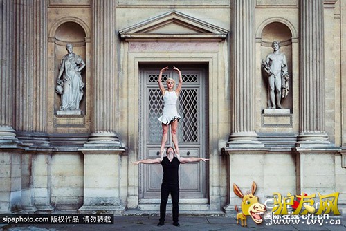 : 一对马戏团舞者情侣长期以一种特别的方式环游世界,每到一个地方,这名女子都会踩在未婚夫头顶拍照,用这种有趣的方式记录他们行走世界的轨迹。因为是马戏团表演家,这些动作对他们而言十分简单。 图为巴黎埃菲 ...