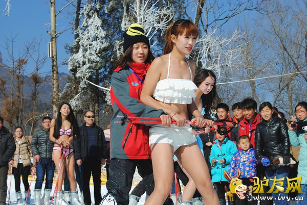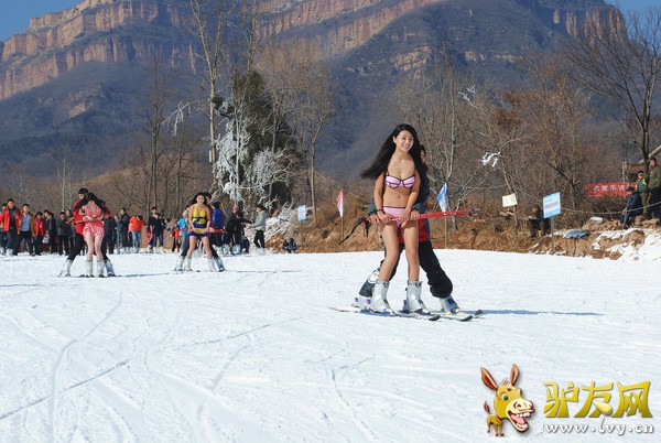 新年第一天,晴空万里蓝无垠。位于太行山下、红旗渠畔的林州太行山国际滑雪场冰火交融演激情。上午10时许,首届太行山国际滑雪音乐节正式开幕。开幕仪式上,既有摇滚歌手的音乐助兴,也有节奏欢快的热火舞蹈。而引爆全场、最吸引眼球的当属"比基尼美女滑雪秀"。 千呼万唤始出来。上午11时许,身着不同颜色和款式“三点式”的十位比基尼美女登台“走秀”,所有现场观众一下子“high”了起来,滑雪爱好者则停止滑雪围了过来。由于人多,一些小青年们使劲儿直往舞台跟前挤,挤不到跟前的竟然喊话:“再往前面站站!”。 随后,比基尼美女们穿上滑雪装备,开始“滑雪秀”表演。冰天雪地,不畏严寒,在滑雪教练保护下,比基尼美女沿着滑道飞速滑下。 “哇,太漂亮了!”“哎呀,这么冷的天,她们不怕着凉啊”“还是年轻啊,身上燃着三把火,要不早冻得面部神经麻痹了”。人群中发出了各种欢呼和唏嘘声。与此同时,大家忙拿起手机“啪啪”地拍起照片。 据了解,林州太行山国际滑雪场地处太行山东麓、国家4A景区红旗渠畔,2013年12月份正式营业,由于空气清新、服务周到,成为安阳林州及周边县市滑雪爱好者亲睐的滑雪胜地。此次滑雪音乐节的举办,为人们呈现了冰雪与音乐交融的文化盛宴,是展示当地“冰雪冬季游”资源和魅力的一次尝试。 |