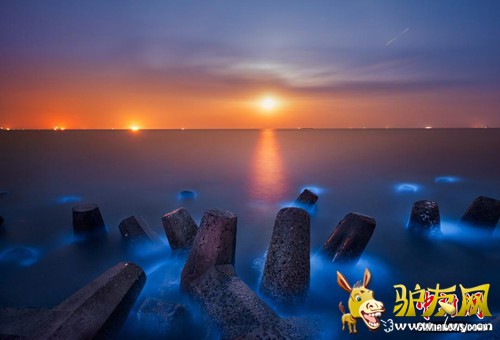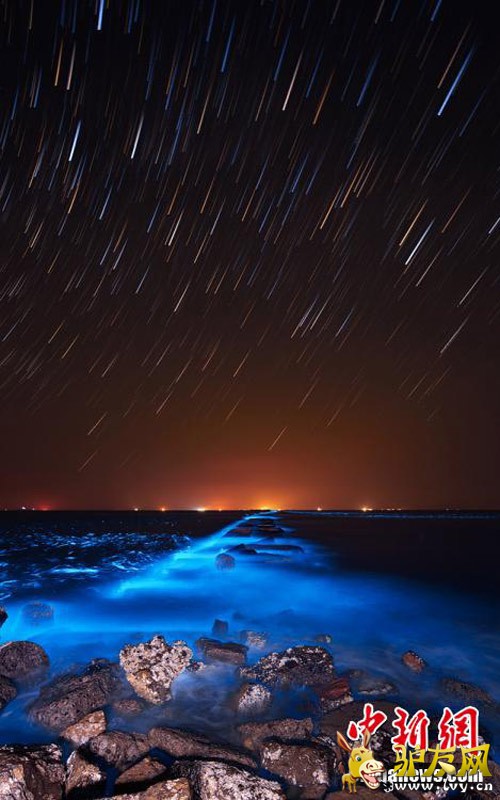 山东东营现蓝色“荧光海” 如“阿凡达世界”