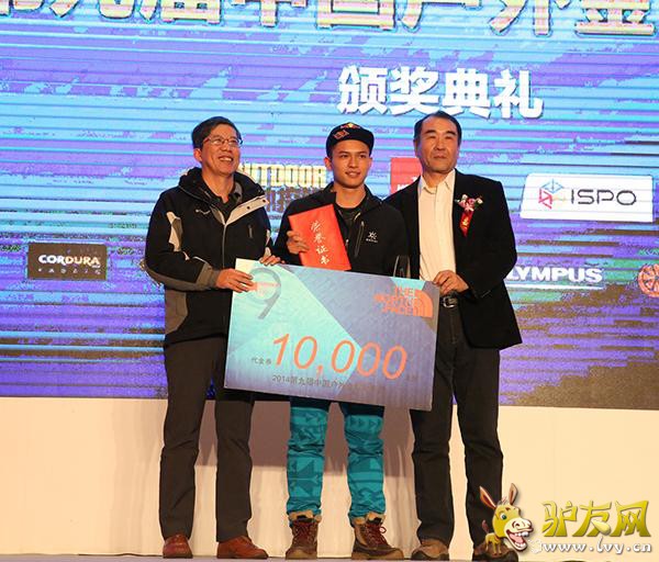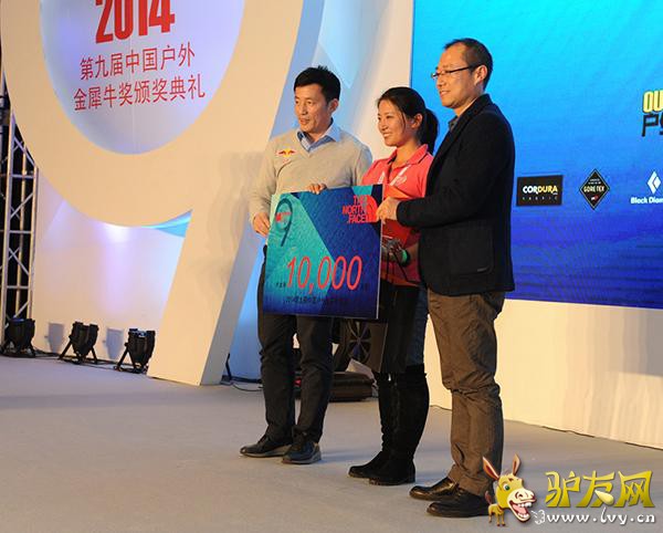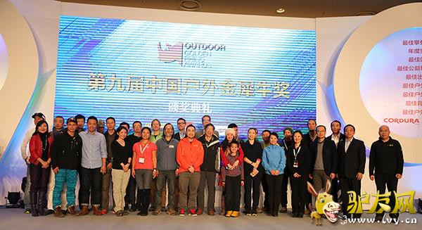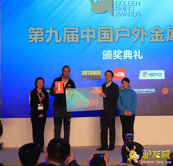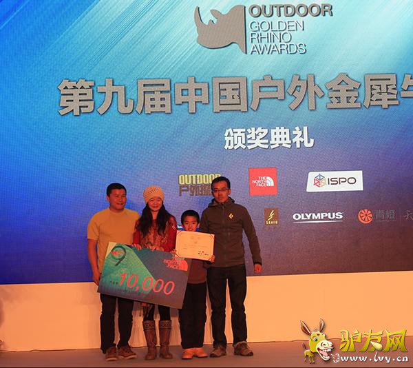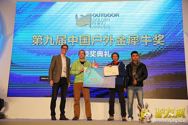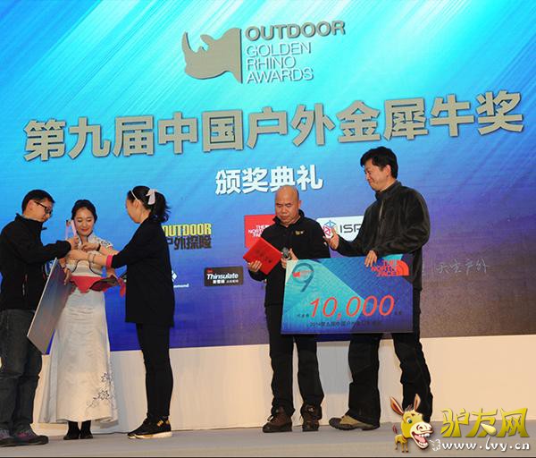 2015年1月29日,由《户外探险》杂志、ISPO BEIJING联合知名户外品牌THE NORTH FACE共同举办的“第九届中国户外年度金犀牛奖”颁奖典礼在北京国家会议中心完美落幕。颁奖现场,户外界名流云集一堂,星光闪耀,共同见证2014年度中国户外最高荣誉花落各家。本次活动得到CORDURA、戈尔特斯、BLACK DIAMOND、3M新雪丽、三夫户外、奥林巴斯、青橙手机等品牌的赞助支持。 “中国户外年度金犀牛奖”是由户外运动专业媒体《户外探险》杂志发起的一项年度评选活动,依照影响力、领先性和价值等标准,全面评价过去一年中国户外运动的发展状况,推介最具影响力和先锋精神的户外事件和人物,自2006年创始至今,已成功举办九届。本届评选历时两个多月,每个奖项从众多推荐候选者中遴选出三名候选者作为提名,再由专家与资深户外人士所组成的评审团评出各个奖项的大奖得主。