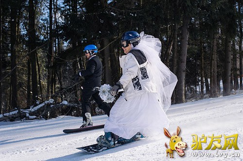 据英国《镜报》1月12日报道,美国俄亥俄州一对新婚夫妇热衷滑雪,日前他们在纽约滑雪场举行了一场特别的婚礼,新郎和新娘穿着传统的结婚礼服在滑雪板上喜结连理。![]() 据悉,25岁的新郎鲍勃·雷兰和27岁的新娘玛利亚十几岁时就喜欢上了滑雪,他们相识后不久就决定要办一场滑雪主题的婚礼。 婚礼上,鲍勃和玛利亚均穿着传统的西装和婚纱。对于穿婚纱滑雪,玛利亚表示:“这并不像你们想象的那么难,滑雪时脚上会绑带子,只需弯曲膝盖就能改变方向。”她还说自己滑雪时会穿另外一身裙摆稍短的婚纱,这样就不会拖在雪地上。 此外,被邀请的35位宾客也和他们一样着正装出席婚礼。玛利亚说,他们会使婚礼过程尽量简洁、节省时间,以免客人受冻,并告知宾客可以穿大衣、戴帽子,但都被拒绝,因为他们称要和夫妇俩一起坚持。 ![]() 新郎鲍勃和新娘玛利亚十几岁时就喜欢上了滑雪。 新郎亲吻新娘。 |