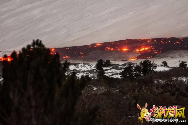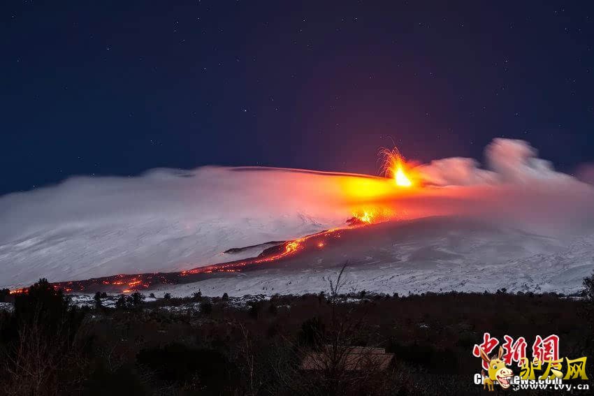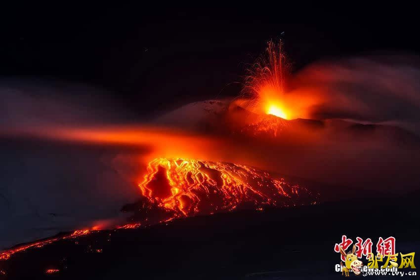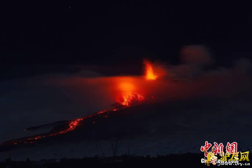 意大利埃特纳火山爆发 熔岩喷涌似火龙飞舞