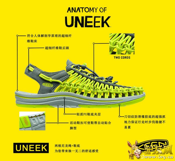 ![]() 鹤立于成千上万的传统鞋型之上,冲破标准,以UNEEK的独特个性,全新构造出了一双挑战了鞋类传统的”绳子鞋”。就像宣传口号中说的一样,这双鞋真的只凭尼龙绳和鞋底编制在一起。 ![]() 只有冲破标准脱颖而出才能做到与众不同。这就是UNEEK的独特个性。它完全有资格使用“UNIQUE”这个名字,但为了表达更多的精神内涵,将其改为UNEEK。UNEEK的每个特点都是独一无二的,除了前瞻性的思考,还有一点最为重要—无与伦比的舒适感。 ![]() 首先会精准测量双脚的尺寸,然后重新设计鞋子的每一个细节,力求鞋子完美贴合您的双脚。以尼龙绳作为基本材料,然后在其基础上只添加绝对必要的其他材料,力争以简求精。这就是UNEEK承诺的独一无二性;在舒适性上,穿着UNEEK徒步数英里依然能提供足够的支撑和保护,无论涉水还是徒步都足以应对自如。 这就是它脱颖而出的内在原因。 两根尼龙绳+鞋底。为您带来独一无二的舒适感受。 ![]() |