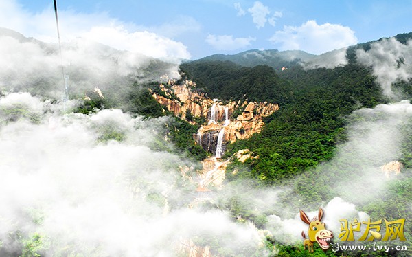坐上索道,俯瞰着脚下郁郁葱葱的森林,还可以隔着玻璃调戏一下旁边平行索道相遇的陌生游人,不,我是说打个招呼,还是很惬意的。穿行在山林上空,突然发现索道慢了下来,我和老Sa还以为出了什么问题,细看才发觉,原来是到了可以观赏中国瀑布的区域,索道是特意被设计成在此处放慢,以让大家好好欣赏瀑布的。这时,几乎走遍了中国各大景区的老Sa又发话了:“大家都在赶时间、急着挣钱,专门把索道放慢这么人性化的设计还真是第一次见,蛮感动的。”这时我心里又OS了,看吧,俺们山东人就是体贴入微!
