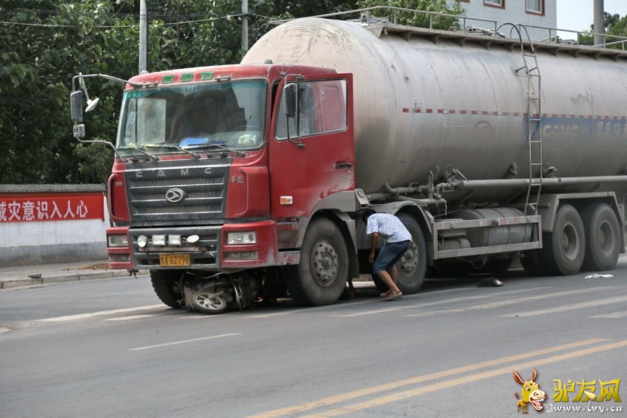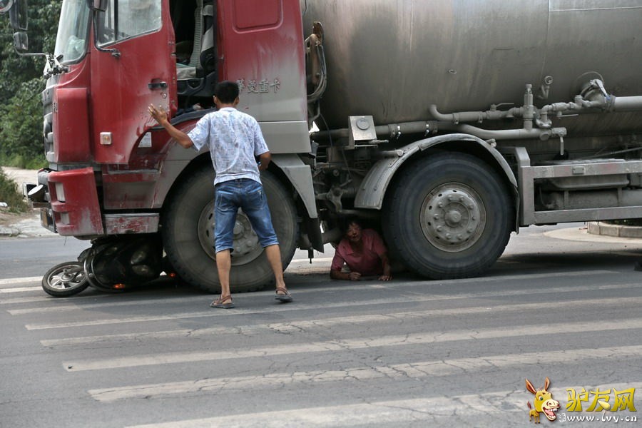 河南女子被撞后求司机别碾死她 谢肇事者不杀之恩 图为肇事的红色水泥罐车。 6月30日下午13点30分许,河南荥阳市发生一起车祸,被撞的女子被卡在车轮下,连声喊疼,并央求“不要碾死我”。当时,一名网友开车经过,看见一辆从小巷往大路上拐的电动车,被一辆车牌号为豫A-G2798的红色大型水泥罐车“咣”的一声碾到轮下,拍下全程。 司机下车查看伤者,伤者被卡在车轮下的空间里,满脸是血,仍然活着。 司机中间站起身的时候,妇女明显非常害怕,连声喊疼,并央求“不要碾死我”。图为看到司机又站起来,伤者害怕了不断地央求着。 看到司机又站起来,伤者害怕了不断地央求着。 司机再次蹲下,图片拍摄者打电话报警。 |
