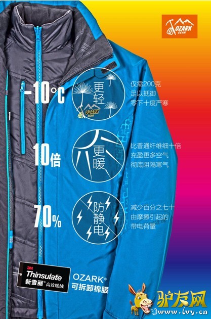 如果把天气预报的准确率定义为80%,那么奥索卡®新雪丽®高效暖绒棉风衣可以适应的范围就是120%。 据悉,作为奥索卡2012年秋冬季主推产品之一,奥索卡®新雪丽®3M高效暖绒棉风衣不仅保持着新雪丽3M系列暖绒的优异保暖性,最大特点是使用了3M的新一代防静电AS暖绒。集轻、暖、防静电为一身。在保暖的前提下,轻松应对秋冬季因静电而带来的不便。 ![]() ![]() 奥索卡®新雪丽®高效暖绒棉风衣外层是防风防水的压胶风衣,内里是新雪丽®高效暖绒棉服,可以根据不同的天气和环境自由搭配,Zip-In 的设计使拆卸过程简单方便,更轻薄的材质也更利于收纳携带。在气候多变的户外旅途,无须更多准备,你就可以让温暖舒适一路随行。