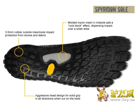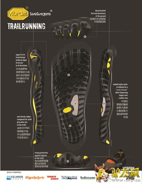 为越野跑而生:VFF首款极简越野跑五指鞋Spyridon首秀香港100Minimalist极简主义是指一种生活方式、着装风格或设计风格,感官上简约整洁,品味和思想上更为优雅。作为一种生活方式或时装风格,极简主义以回归本真和回归自然作为口号。2013年1月19日, Vibram FiveFingers首款极简越野跑五指鞋Spyridon亮相Vibram香港100公里超级越野跑,热爱极简主义跑步方式的跑友再次以他们的脚步践行着善行无辙迹的理念。 善行无辙迹出现在畅销跑步书《天生就会跑》的开篇题记,出自老子《道德经》的名言。含义是,善于奔跑的人不会留下很深的痕迹,他们轻快的脚步像羚羊一样轻盈。这也是跑步者的极致追求。 《天生就会跑》成为人们了解和发现极简主义的一个通道,从这条通道进去,我们发现了人类奔跑的演变和运动鞋的演化历史,更为重要的是人类被遗忘的赤足运动历史。这本书的畅销有意无意之中带动了一个运动鞋的新浪潮的到来——极简/简约式跑鞋的发展,核心主题都是去除繁琐的减震系统,提倡改善跑姿,使用自己身体的力量来轻快的奔跑。这就是极简主义和简约式跑鞋的发展背景。 2009年可谓极简主义跑鞋的发展元年,当时仅有包括VIBRAM®在内的10个品牌提供很少的产品型号,到2012年已经有32个品牌推出极简主义系列跑鞋产品,涉及的产品型号超过100个以上。特别是极简越野跑鞋领域将是未来巨大的趋势,根据2012北美极简主义系列跑鞋产品的跟踪销售显示:2012年,极简越野跑鞋在户外专业店增长达108%,在体育用品连锁店增长达208%,在跑步专业店增长达50%。 2013年1月19日, Vibram FiveFingers首款极简越野跑五指鞋Spyridon亮相Vibram香港100公里超级越野跑,Vibram Fivefingers Spyridon和Spyridon LS是Vibram首款极简越野跑五指鞋,不仅带来极好的平衡“脚感”,还在崎岖路面提供保护。鞋面采用椰壳制成的弹性网布与抗磨损弹性聚酰胺(尼龙)织物,比VFF其它款鞋面更耐磨,强度更大,保护你的双脚免受泥土和岩屑侵蚀。 Vibram Fivefingers Spyridon和Spyridon LS. Spyridon采用3.5毫米极简Vibram橡胶大底,矩形分段切割设计让双脚更灵活;采用最新的VIBRAM 3D COCOON技术,在模塑尼龙网底增加一个类似“岩石块”,在减轻重量的同时,更能防止在岩石路面上刺穿鞋底,分散鞋底压力。Spyridon提供360度可靠的抓地力,全方位的牢固抓地力保护脚部免受石头和砂砾的冲击。Spyridon在设计研发阶段在Vibram中国技术研发中心进行了长达一年以上的产品性能测试,其中包括实验室和跑道测试,可谓品牌多年研发的成果。Vibram FiveFingers®非凡的技术潜能得到了激发,证明了其在这一鞋靴创新领域的实力,堪称安全、性能与品质的绝对代言。 Spyridon弥补了KSO Trek的不足。虽然鞋底厚度同样为3.5毫米,在不牺牲简约性的前提下,它的舒适性和抓地力更强,经过100公里各类复杂路面的考验,赤足跑者可能很难找到Spyridon无法处理的越野路面。自然透气的鞋帮上的钩孔锁紧装置可以随意调节松紧度,使鞋子稳贴舒适。Spyridon穿上会感到就像手套包裹性强而紧凑,虽然比KSO Trek稍重,但与越野跑鞋相比仍轻便很多。 Vibram FiveFingers Spyridon,为越野跑而生。