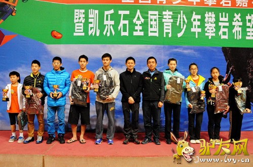 经过两天的激烈角逐,2013全国青少年攀岩嘉年华暨凯乐石全国青少年攀岩希望之星总决赛于10日晚在此间的中国地质大学结束,男、女共9个组别的年度"攀岩希望之星"全部产生。![]() 获得"攀岩希望之星"的选手与颁奖嘉宾合影留念。人民网记者 王霞光摄 获得男子各个年龄组年度“攀岩希望之星”是:男子青年组中国地质大学陈睿智、男子少年A组武汉市登山户外运动协会龚力、男子少年B组珠海市香洲区登山协会陈奂宗、男子少年C组广东省奥林匹克体育中心潘愚非、男子少年D组广州市擎天攀岩有限公司黄嘉轩;中国地质大学牛笛、北京山岳美途体育文化有限公司时雨、北京点石户外运动发展有限公司陈愉和深圳市登山户外运动协会张悦彤分别获得女子少年A到D组年度“攀岩希望之星”。 另外,为鼓励并感谢本年度青少年攀岩推广活动做出突出贡献的教练和单位,本次活动还评选并颁发了优秀青少年教练奖和优秀推广基地奖等奖项。 运动员在决赛中。人民网记者 王霞光摄 运动员在决赛中。人民网记者 王霞光摄 运动员在决赛中。人民网记者 王霞光摄 |