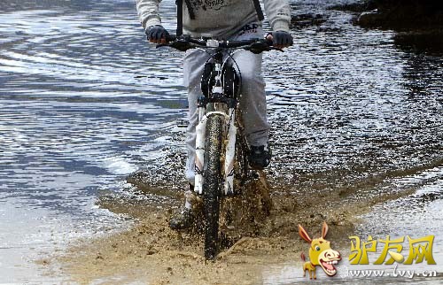 拉萨青年骑行游 10月4日,一名拉萨青年骑车涉水。
