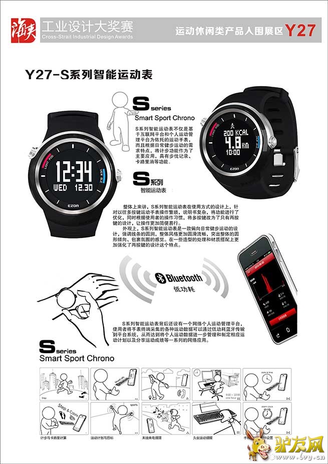 驴友网:2013年10月28日,主题为“设计让生活更美好” 2013年海峡工业设计大奖赛颁奖仪式在厦门举行,这是海峡两岸首次共同举办工业设计评奖活动。至此,这场历时半年的工业设计盛宴落下帷幕。EZON智能运动表S系列荣获本次设计大赛产品设计银奖。![]() 2013年海峡工业设计大奖赛由厦门市人民政府与福建省经济贸易委员会、台湾创意设计中心共同主办,厦门市经济发展局承办。大赛旨在通过优秀工业设计作品的评选,通过设计与制造的互动和对接,营造大力发展工业设计的浓厚氛围,鼓励企业自主创新,丰富产品品种、提升产品附加值、创建自主品牌、提高产品质量,提升民众生活品质。 此次大奖赛共征集到两岸近千件产品作品,其中入围终评的263件产品作品经过专家现场评审与答辩将最终决出16个产品设计奖、9个概念设计奖。EZON以体验为核心竞争力,以运动为基因,凭着冲劲活力、敢于创新及强调细节的信念,从众多的入围产品中脱颖而出,一举夺得产品设计银奖。 EZON智能运动表综合应用可穿戴传感器、低功耗无线通信、移动服务、云计算和数据挖掘与智能分析等物联网技术构建了一种新型户外运动服务平台。它可为运动爱好者提供智慧和快乐的运动服务,以帮助他们在运动中提高健康水平。通过面向腕表客户和腕表客户群的核心业务流程设计,平台需要提供运动感知服务、运动数据汇集与同步服务、个人运动健身移动服务和运动健身社区服务等。运动感知服务提供步数、运动轨迹等运动参数感知功能。运动数据通过智能运动表汇集并同步至智能手机或后台云计算中心的功能。个人运动健身移动服务借助手机应用提供运动计划管理、可视化及分析服务和个人运动档案管理等移动功能。运动健身社区服务主要提供运动大本营管理、运动数据分享发布和运动数据统计等功能。 ![]() |
